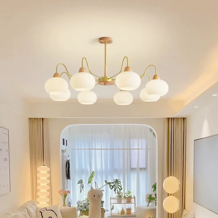 JACKSUN Living Room Pendant Lamp Persimmon-Shaped Light Nordic Minimalist Dining Light Wood Vintage Creative Bedroom Lighting